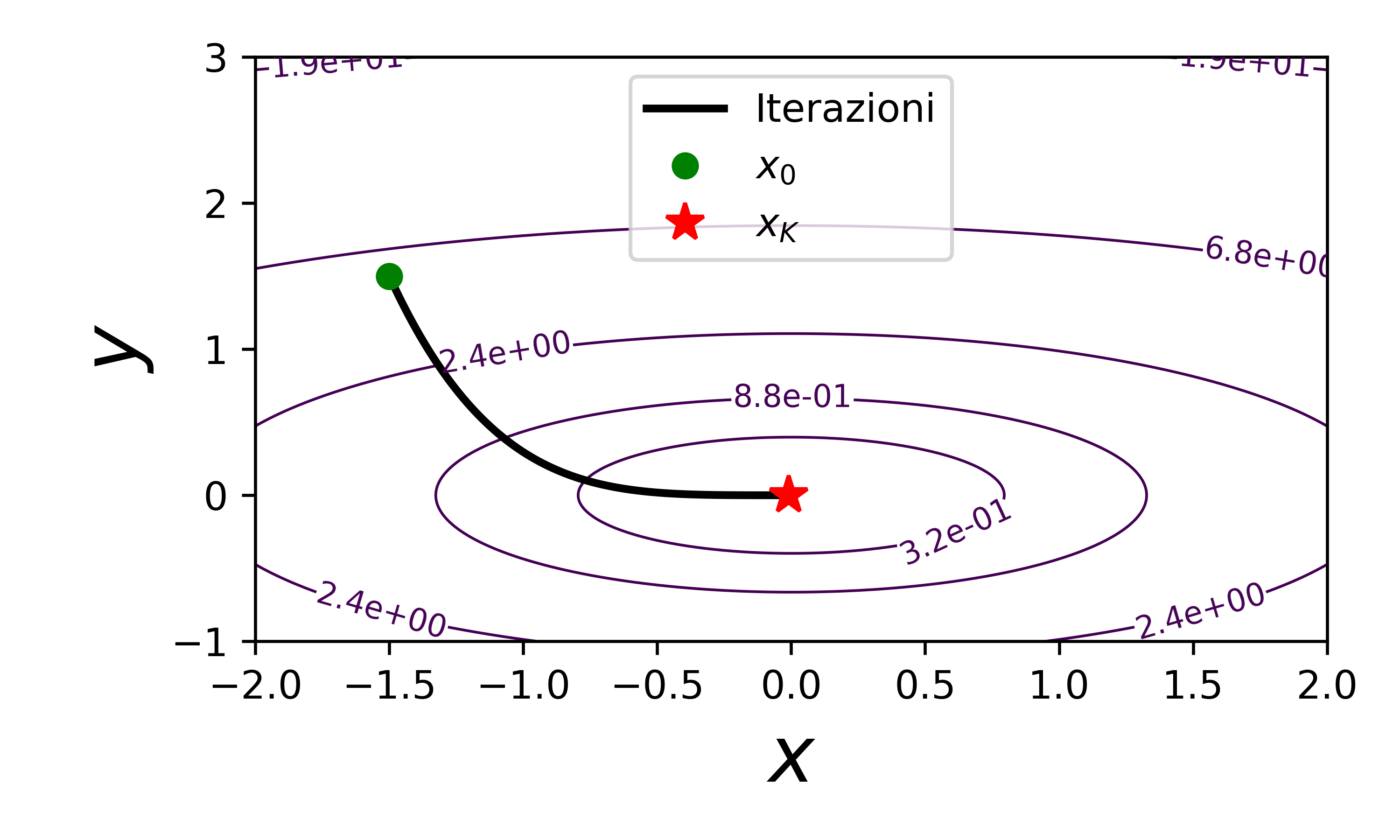 Dietro il vincolo che 0<tau<2/L c’è l’ipotesi che il gradiente di f sia L-Lipschitz. Questa è spesso accoppiata all’ipotesi che f sia (strettamente) convessa, per garantire l’esistenza (e unicità) di un minimo globale e tassi di convergenza ottimali del metodo. Per ora non mi ci soffermo molto, ma dedicherò il prossimo articolo ad introdurre cosa sia una funzione convessa, e poi andremo a vedere le proprietà di convergenza del metodo nel successivo.