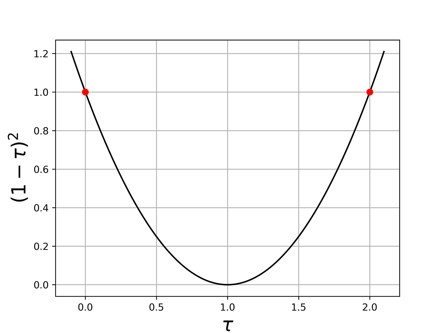 e la funzione (1-tau)^2 è più piccola di 1 solo se tau è tra 0 e 2:
